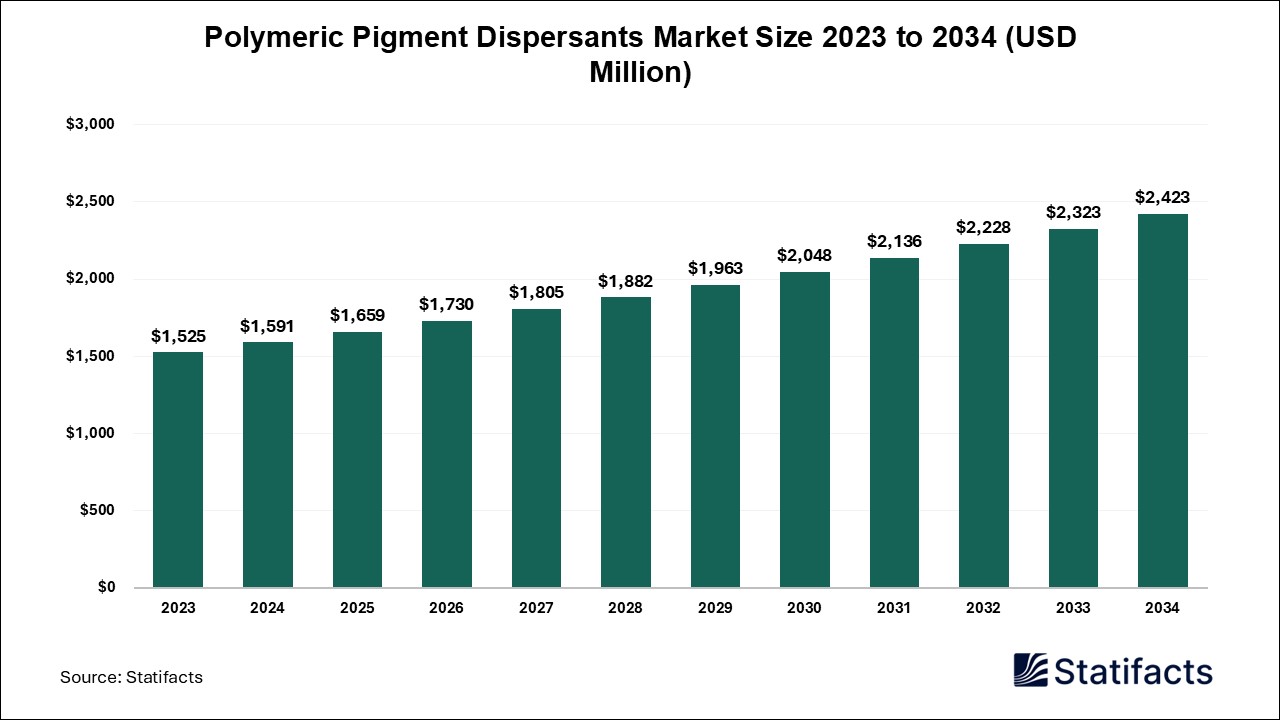 The polymeric pigment dispersants market refers to the production, distribution, and use of polymeric pigment dispersants which are chemical additives that are used to enhance solid particle dispersion in the liquid systems. The main application of polymeric pigment dispersants includes use in coatings to disperse color pigments and particulate fillers. The increased use in the industrial coatings, automotive coatings, and plastics industries led to increased demand for polymeric pigment dispersants, driving the market growth.